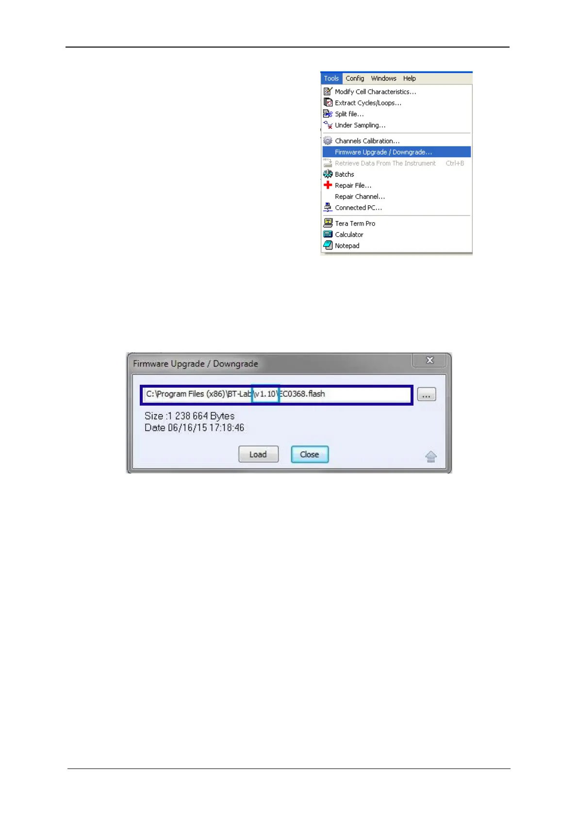 4) The window displays the pathway of the current firmware flash (here: v1.10).