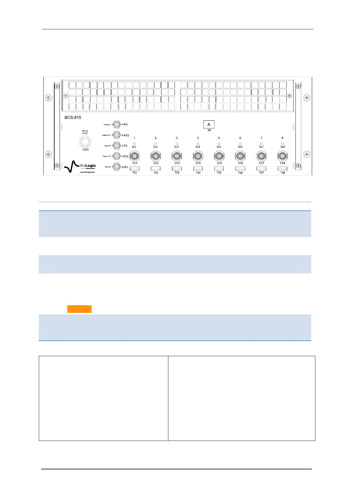 Figure 12 below corresponds to a scheme of the front panel of the BCS-815. Detailed de-