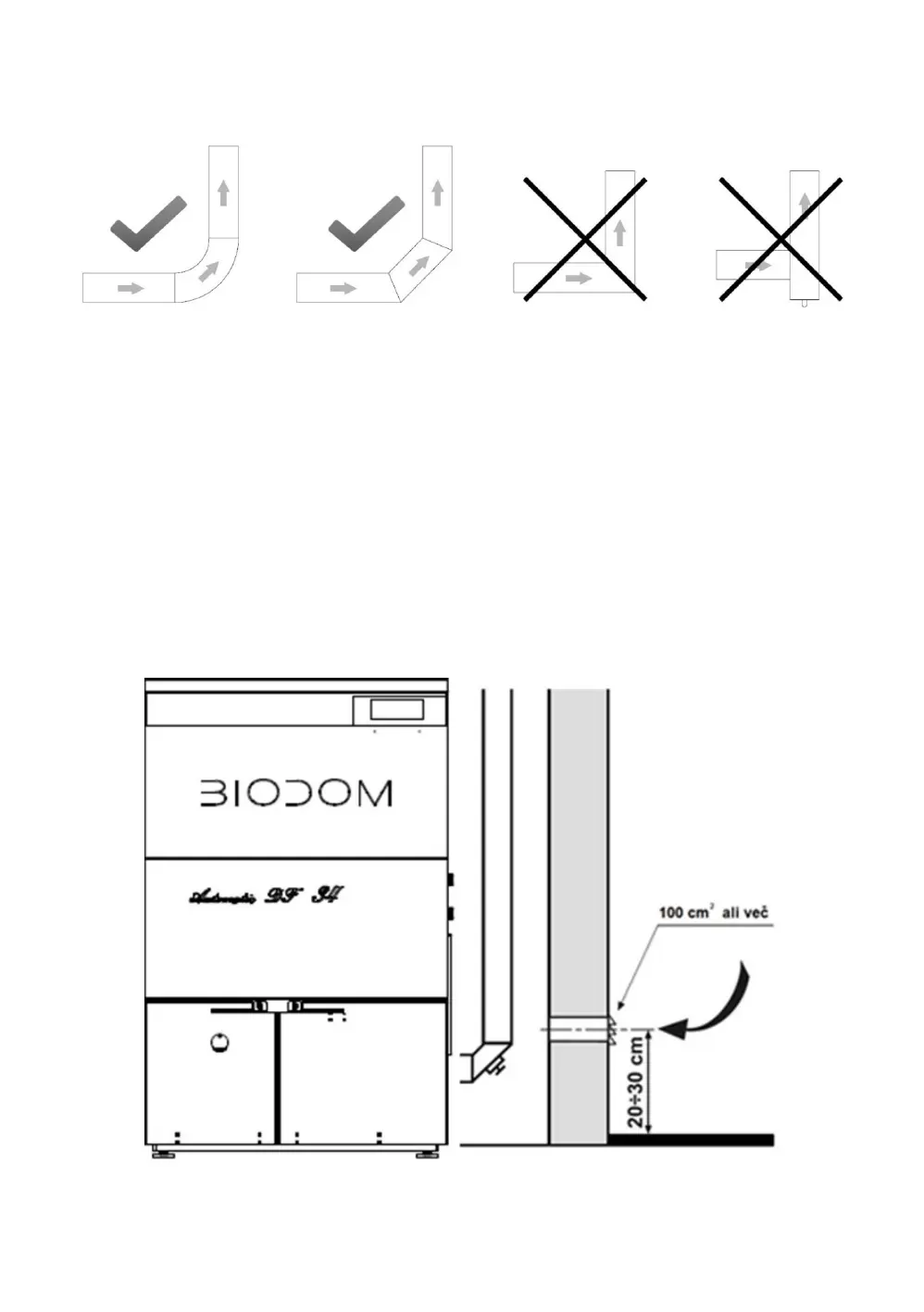 In any case, it is mandatory to provide an initial vertical pipe of at least 1.5 m. This is the only