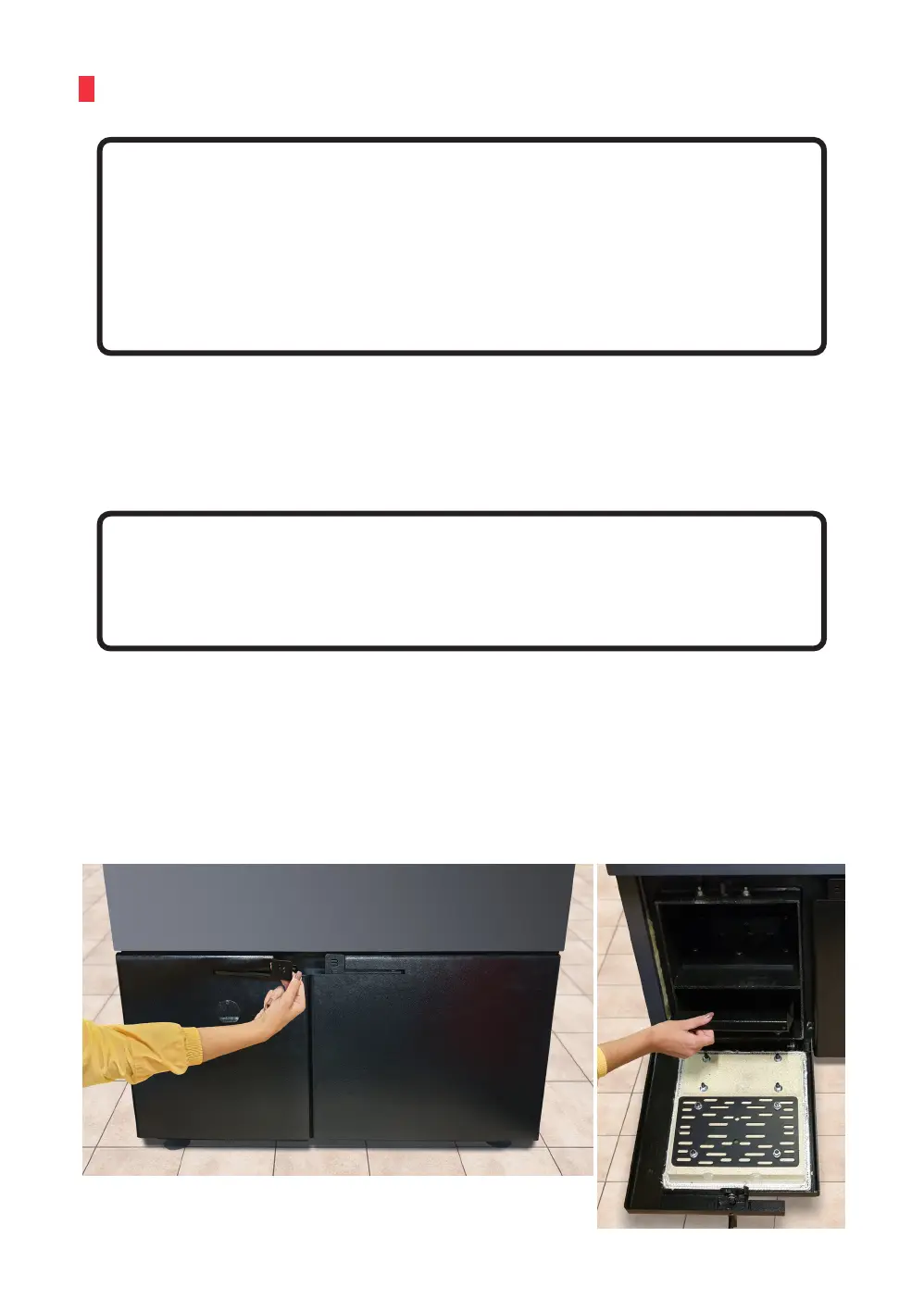 Open the lower left door as shown in the picture, pull out and empty the ashtray