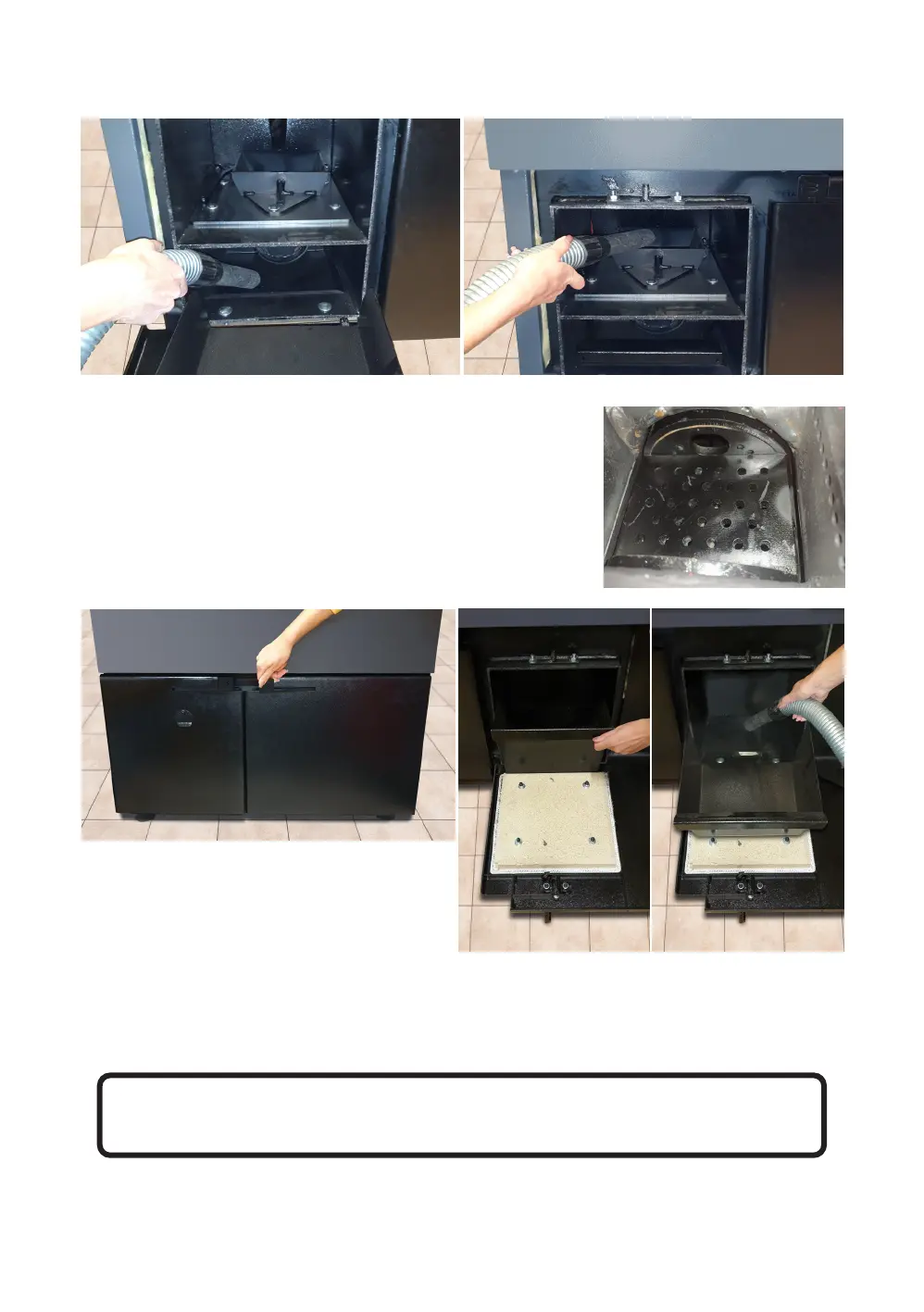 Vacuum the ash from the lower ashtray and the upper part of the combustion chamber.