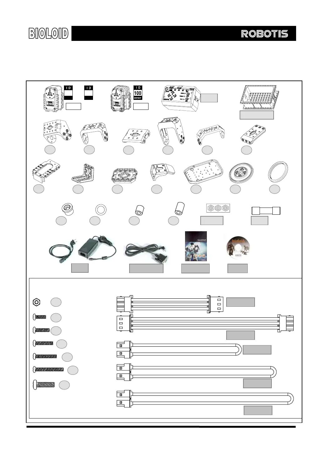 Nuts, screws, and cables shown below are the same as the actual size. Place and measure the parts against the below