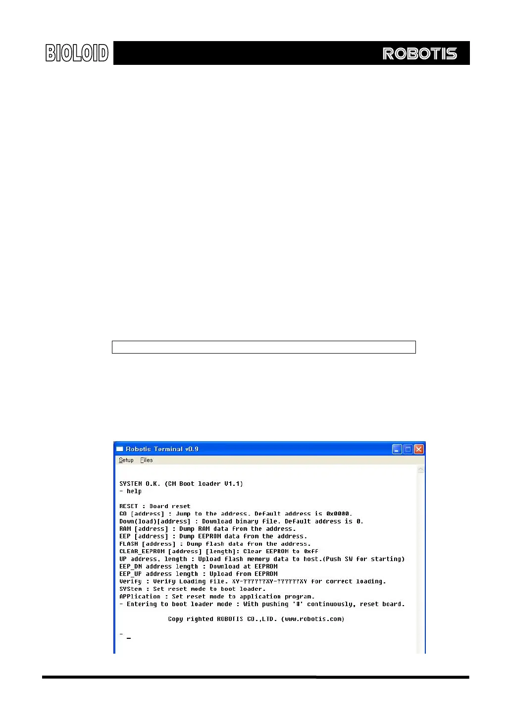 Boot Loader When power is applied to the CM-5 unit, the “CM Boot Loader” program in Reset
