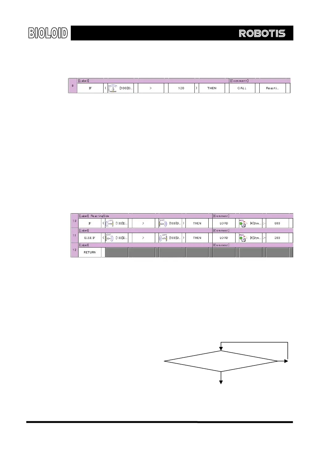 “If “Left distance sensor value > Right distance sensor value” then move to