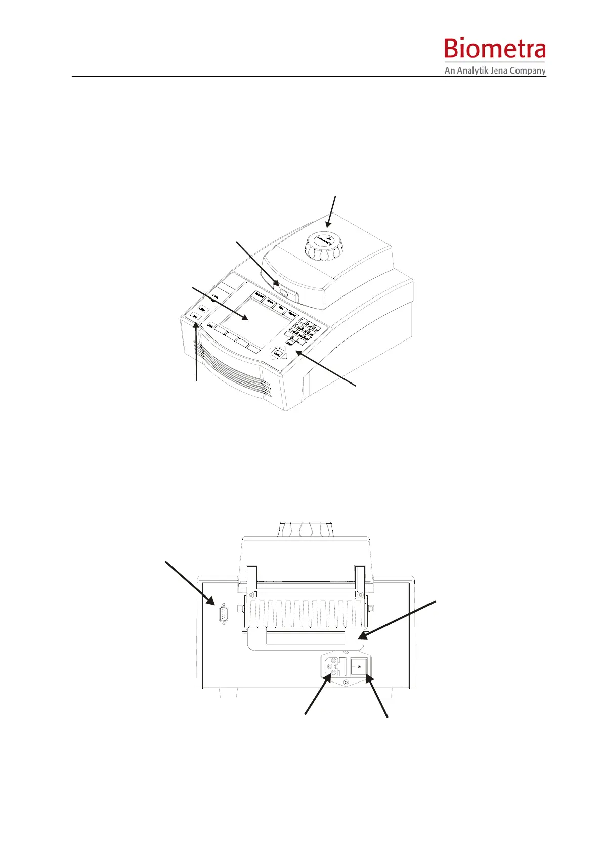 Biometra TProfessional Basic Gradient - 4 Operating Elements; Tprofessional Basic Thermocycler Front View; Tprofessional Basic Thermocycler Rear View