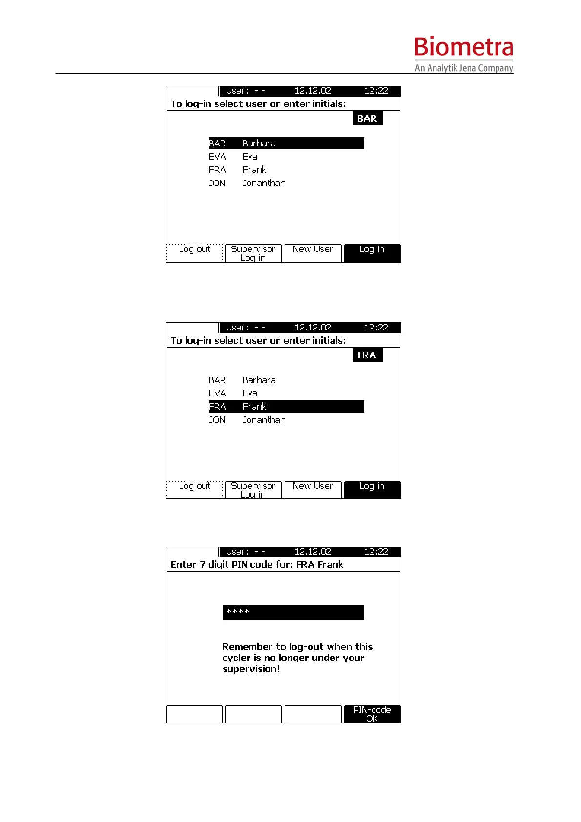 Select User with cursor keys, or enter first initial. The cursor jumps to the first account starting