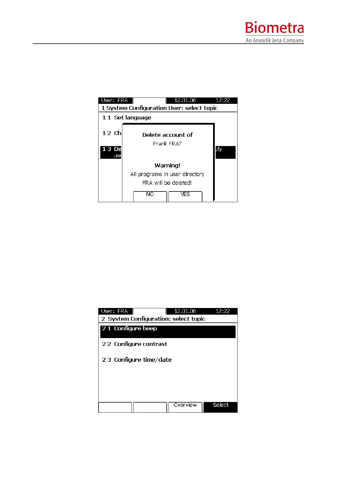 Biometra TProfessional Basic Gradient - Delete Account; System Configuration; Configure Beep