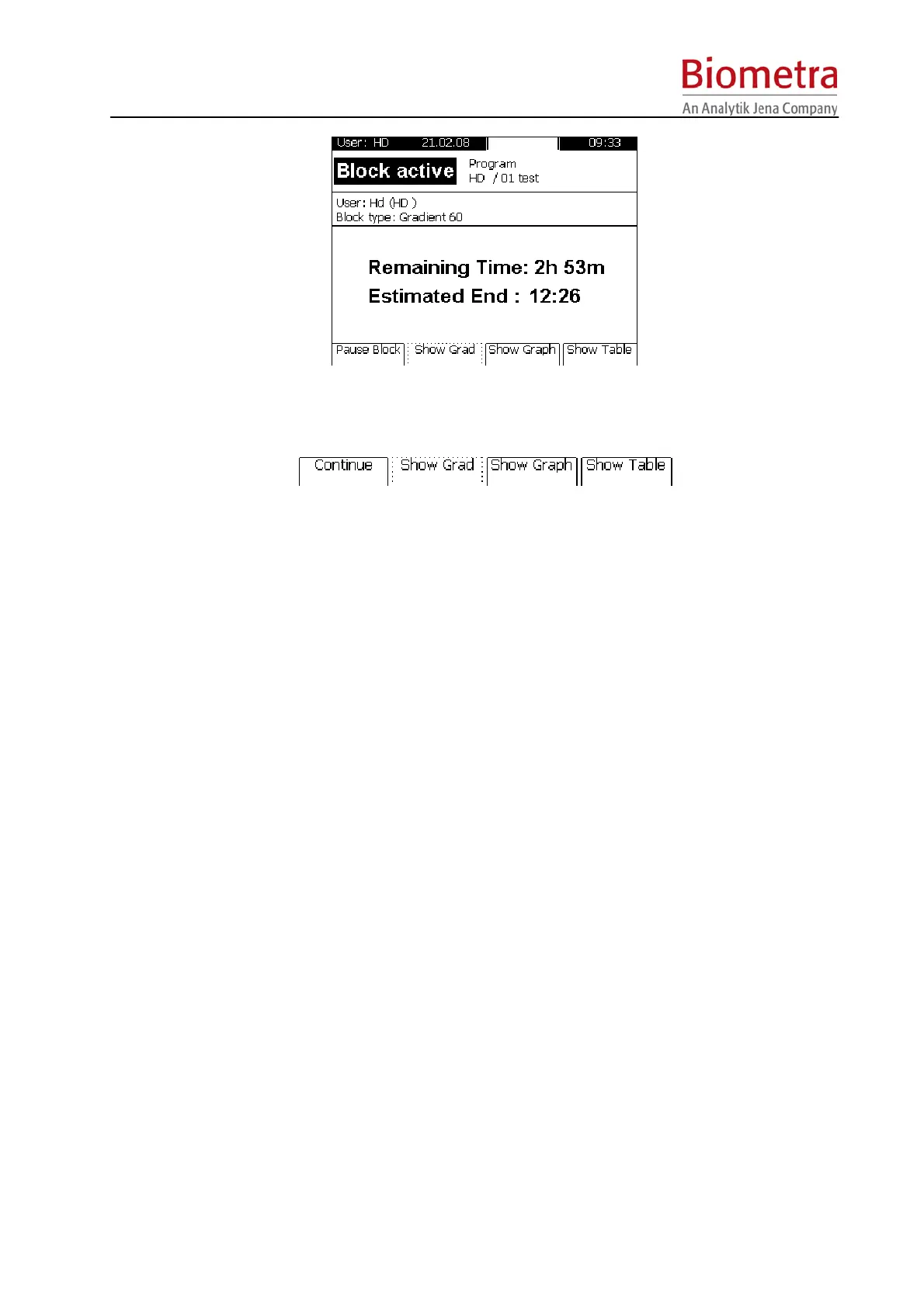 To pause an active pogram press [Pause Block]. The message “PAUSE” is shown in the display and