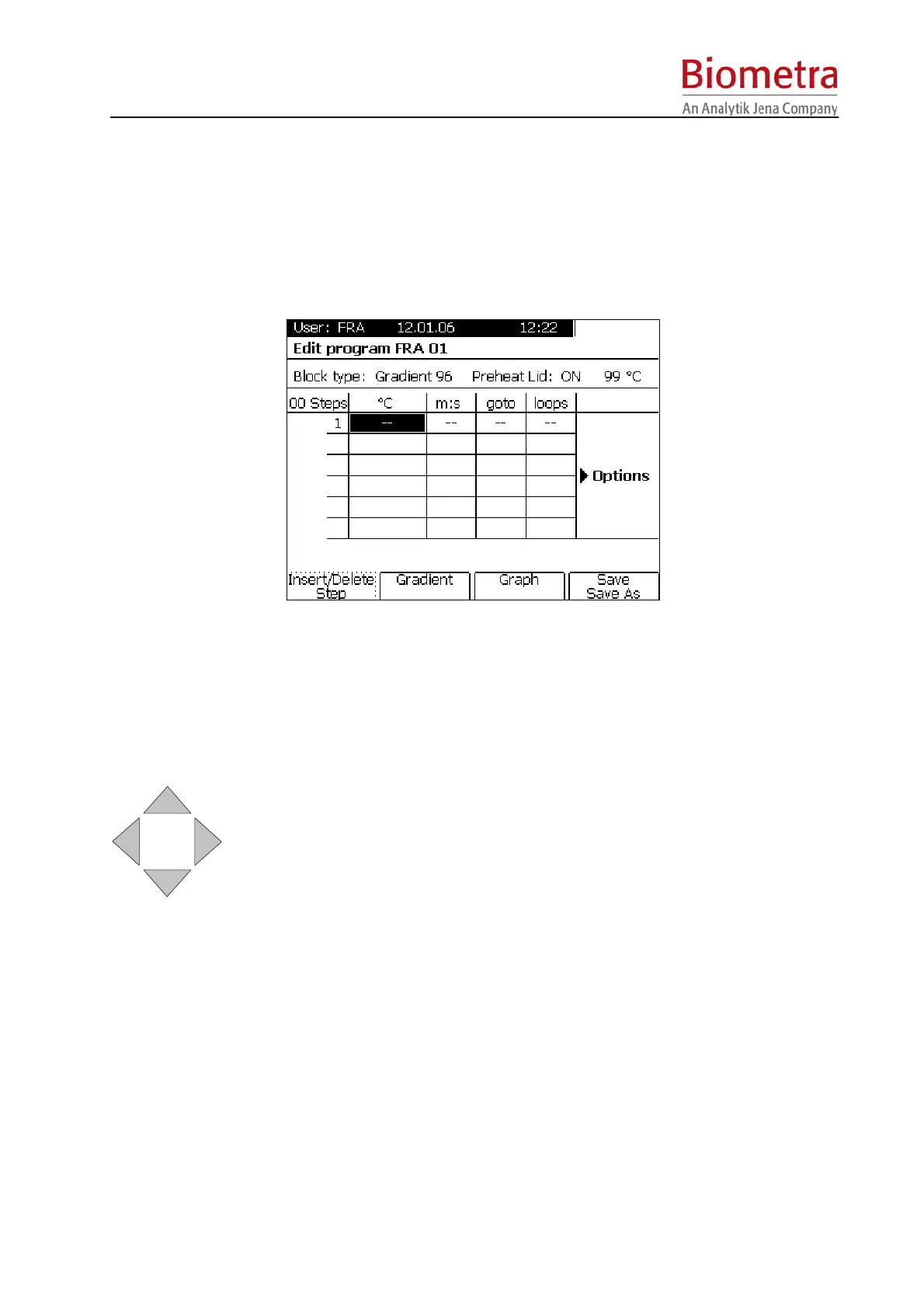 Enter temperature and confirm with [Enter] or step to the next field with cursor key.