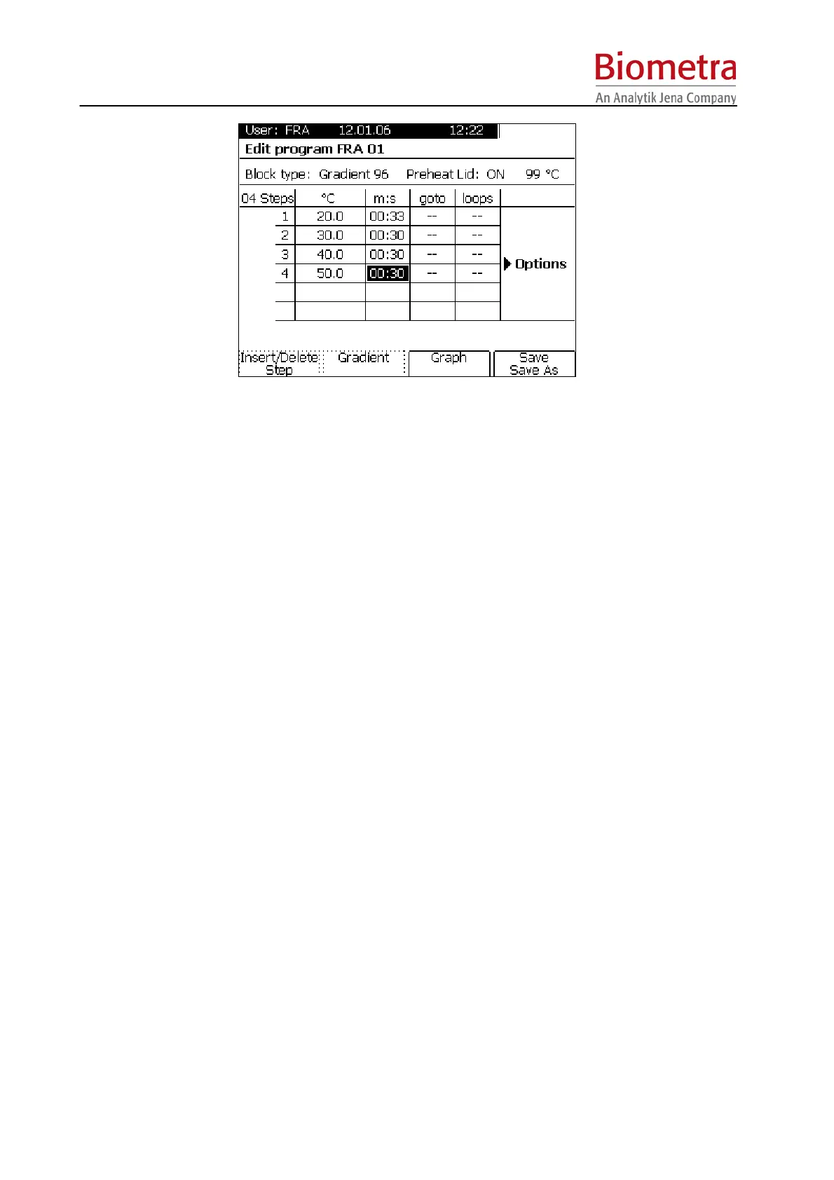 Note: For Biometra Thermocyclers a dot can be used as a shortcut to program minutes.