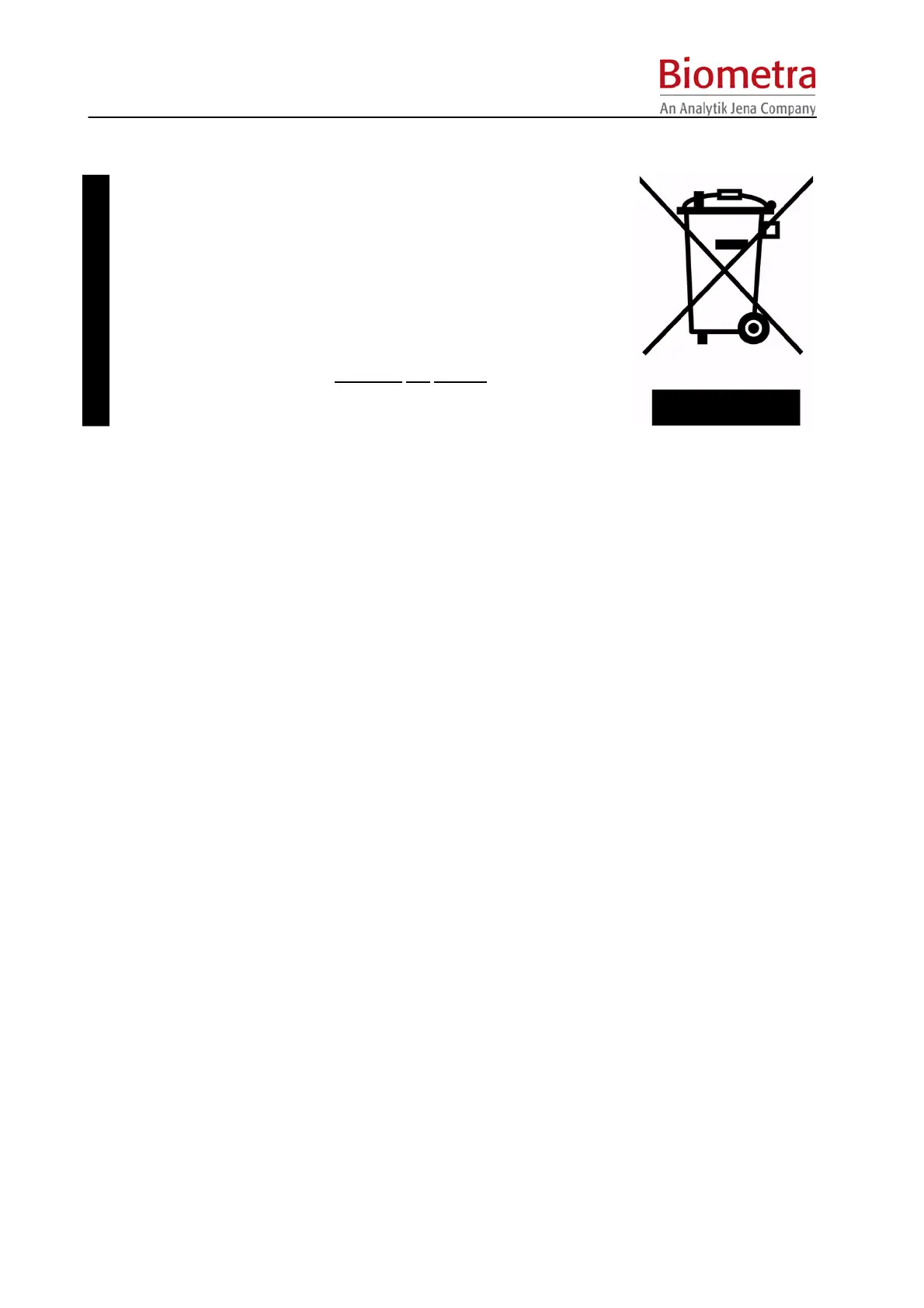 Dieses Symbol (die durchgestrichene Abfalltonne) bedeutet, dass dieses Produkt von der Firma Biometra für