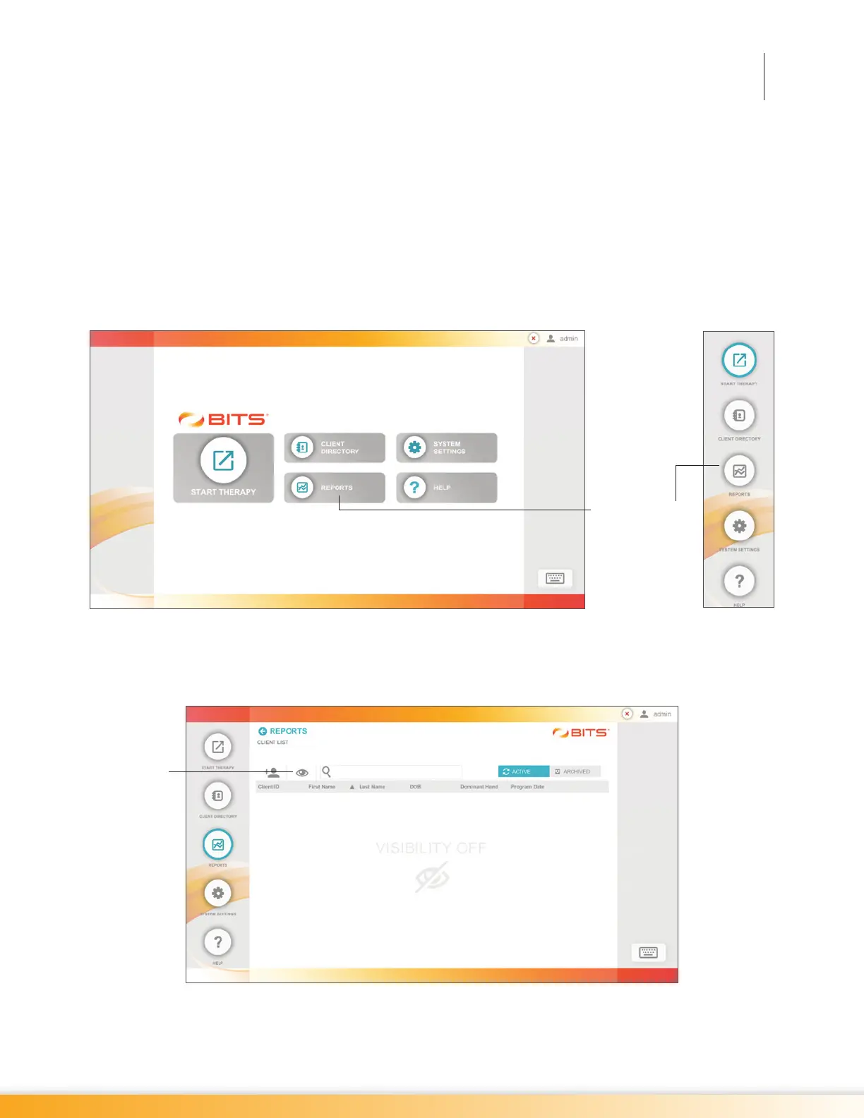 Figure 19-1: Reports Button Home Screen (Left), Navigation Bar (Right)