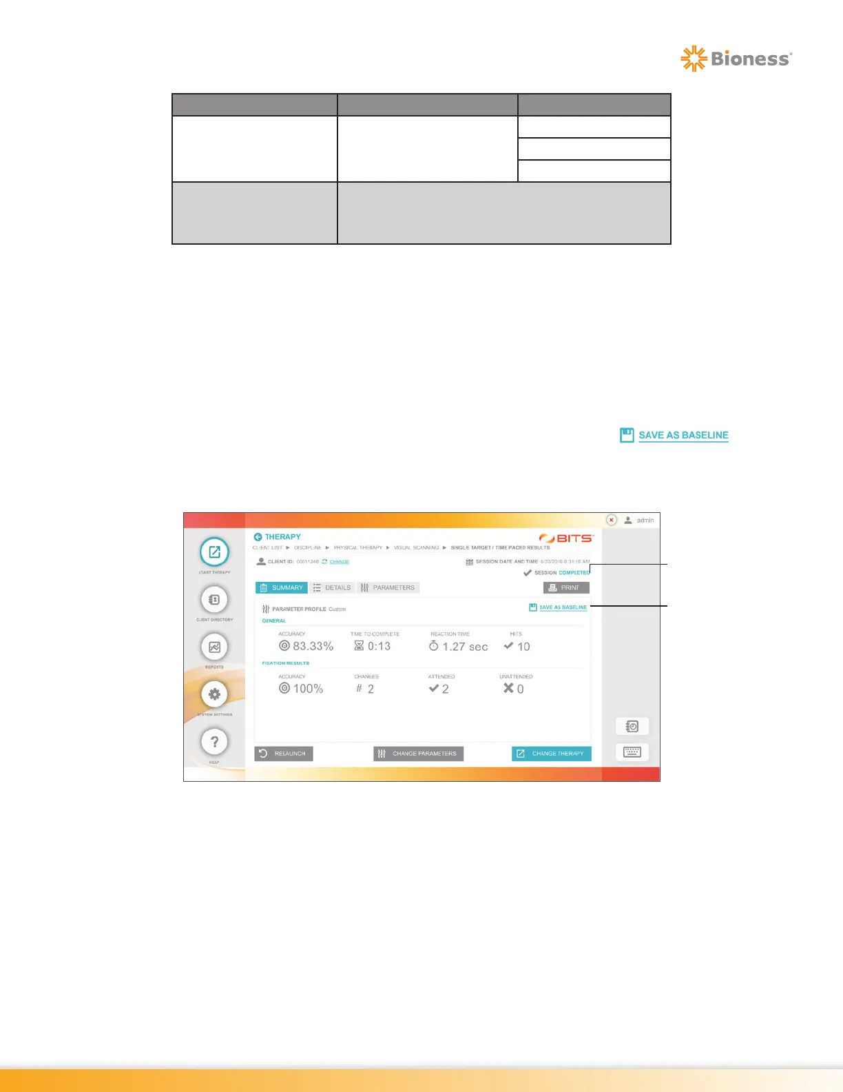 Baselines Sessions are saved following the completion of a Therapy Session. Only Completed Therapy