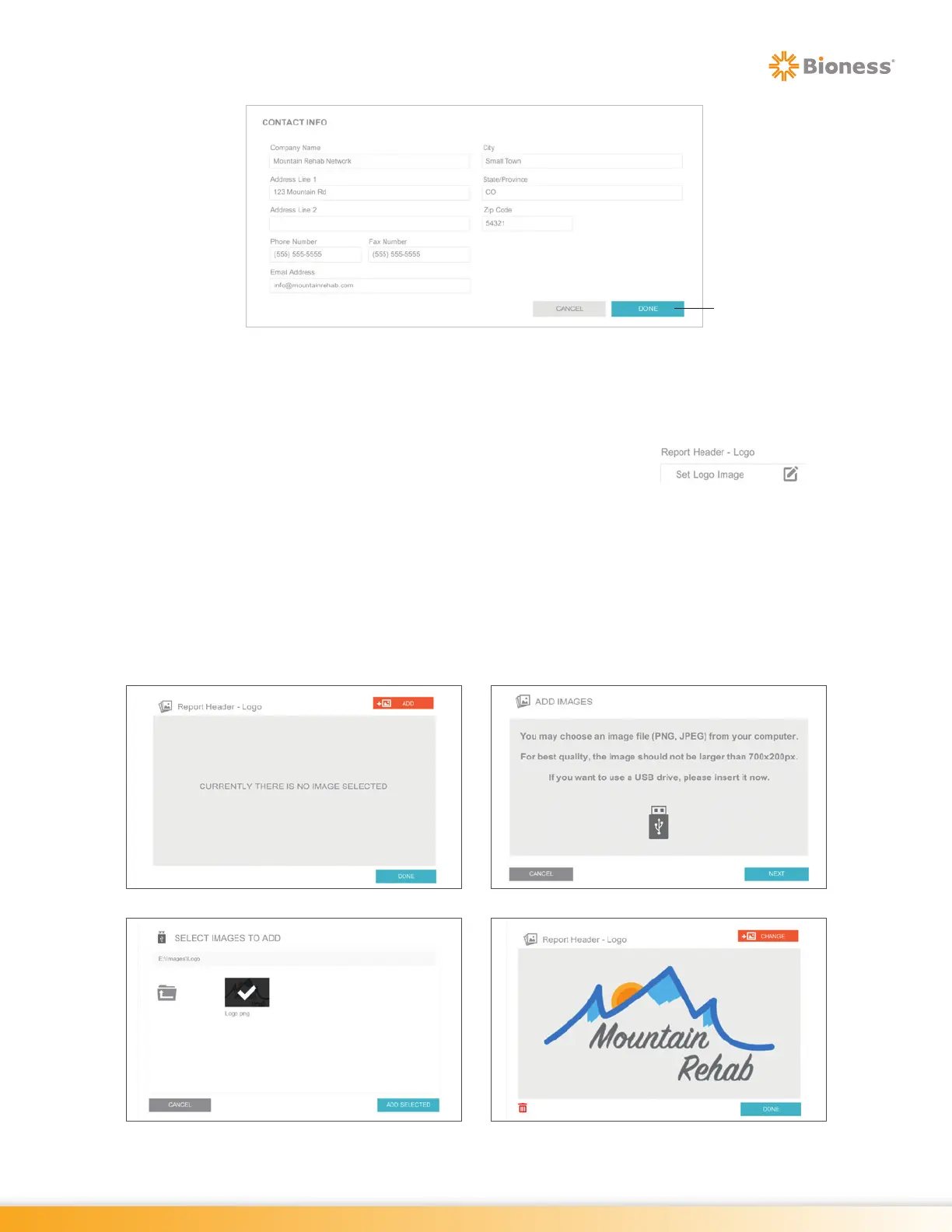 5. The Report Header - Logo Window will open, displaying the logo image. Press the Done Button.