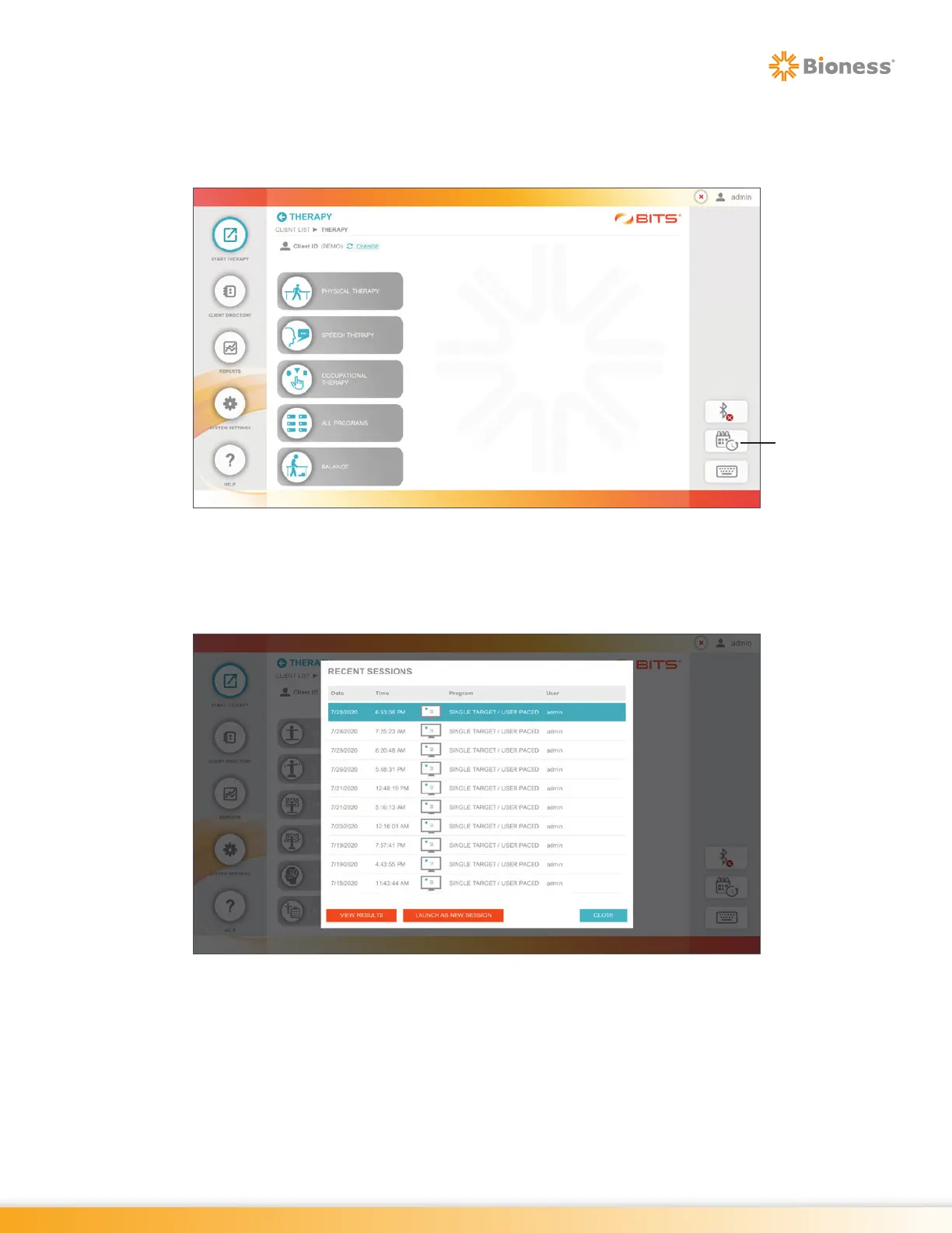 To quickly review all recently completed Therapy Sessions that a client has performed, press the Recent