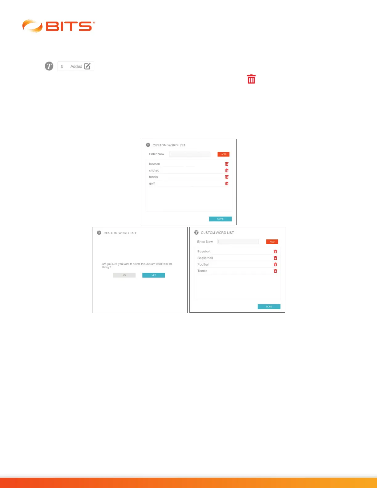2. The Custom Word List Window will open. Press the red Trash Icon next to the word you want to