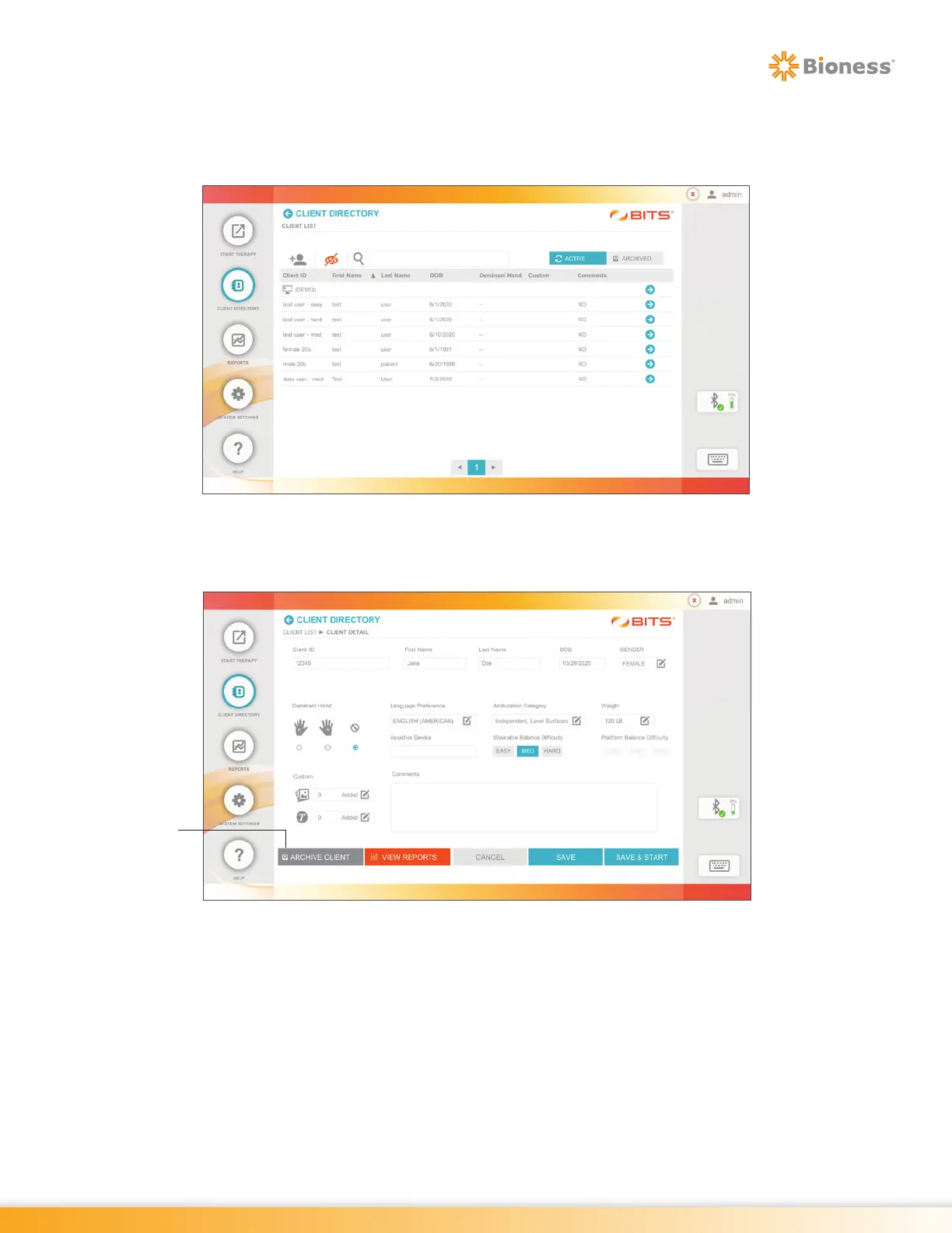 2. The Client Detail Screen will open. Press the Archive client Button. See Figure 5-12.