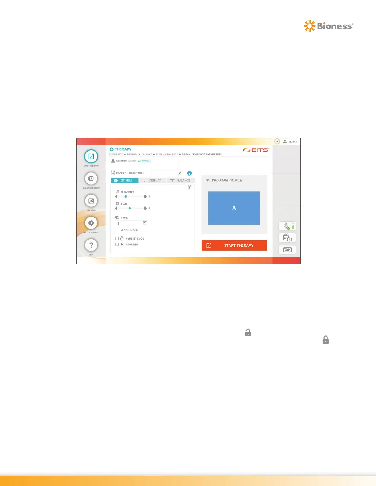 therapy program parameters control how each program will display content and how the client will interact