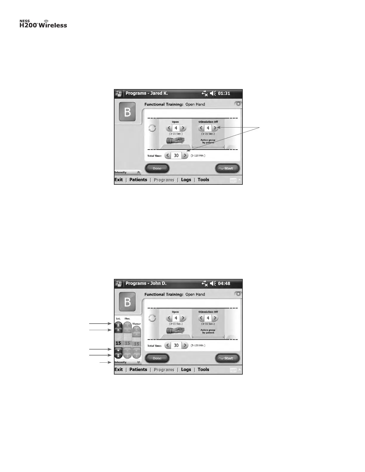Note: Stimulation intensity can be adjusted from A-G programs.