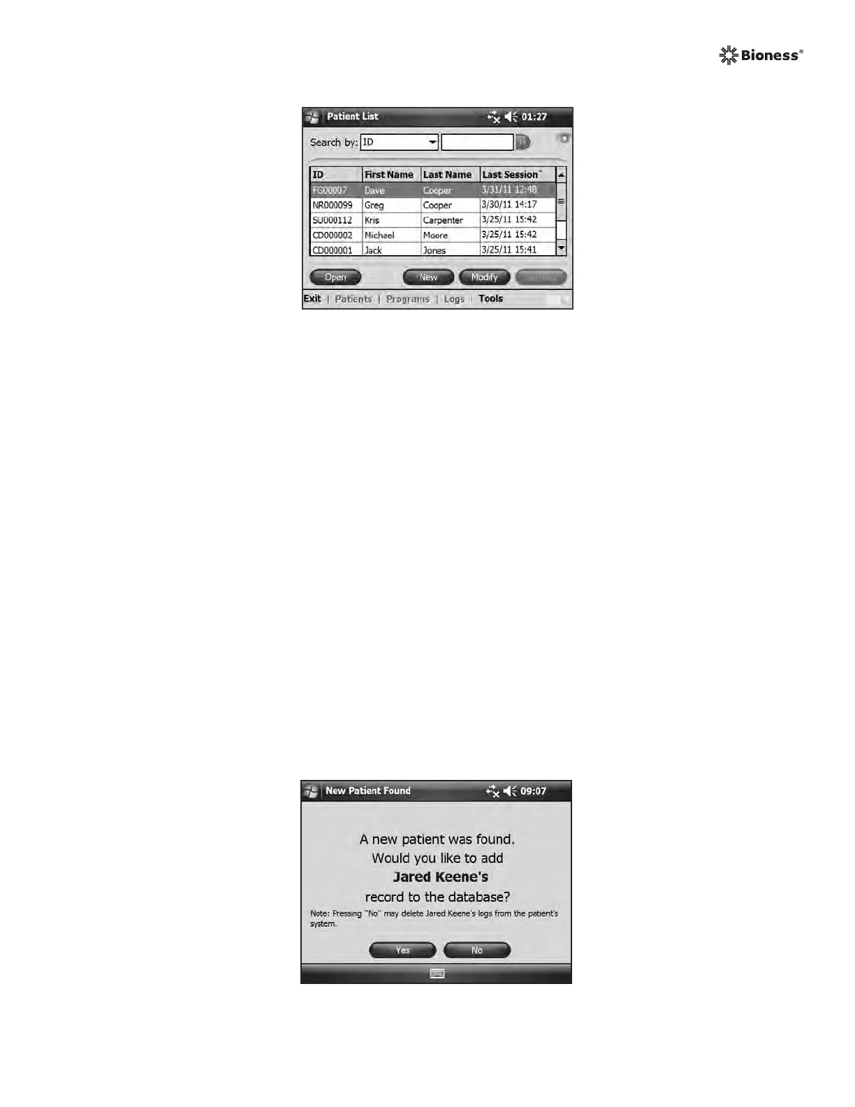 Note: If you press No and open an existing patient record, the opened record will permanently