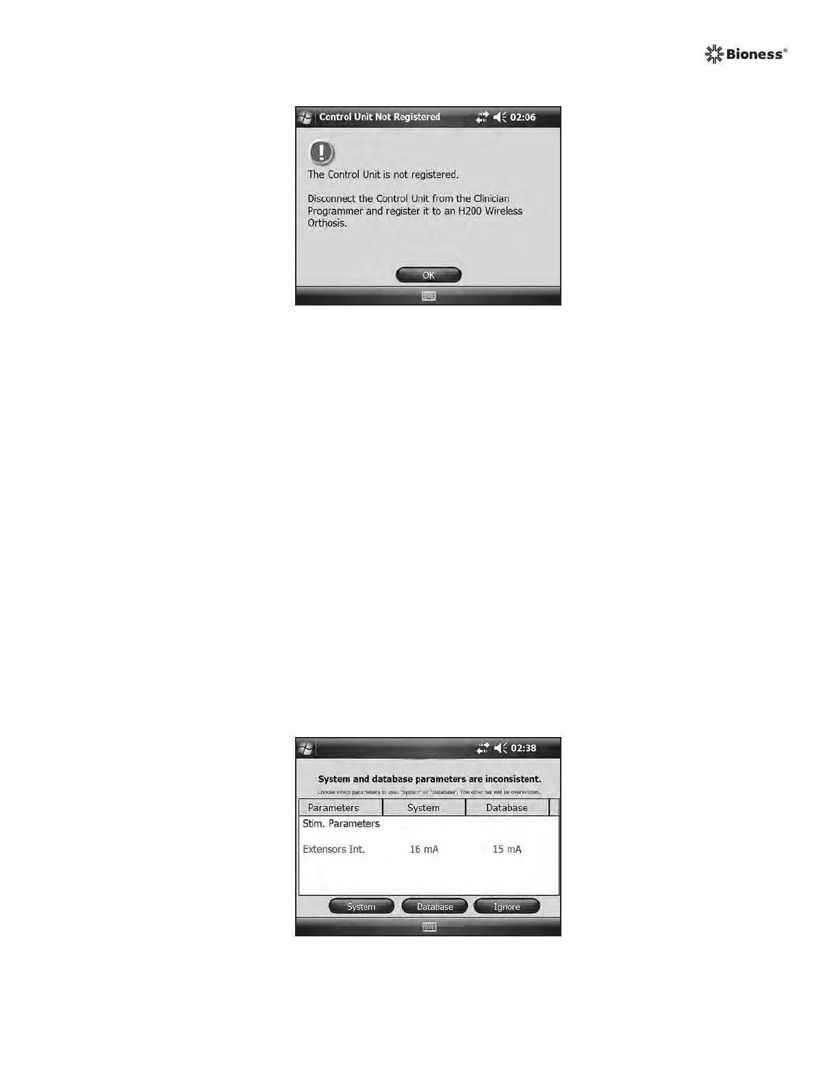 Message appears when the data stored in the Clinician’s Programmer database and on the