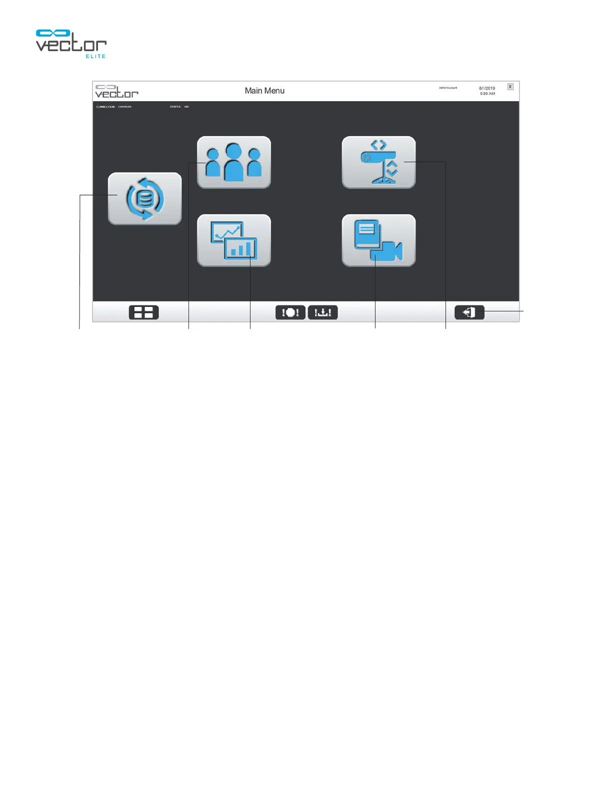 To exit the Vector Elite software application, press the exit button, located in the upper-right corner of