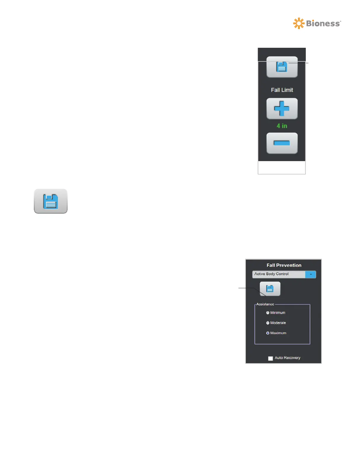 The Fall Prevention setting has three modes. Use the Fall Prevention drop-