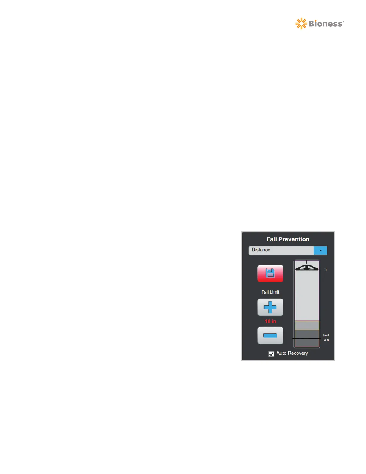 1. Use the Fall Prevention drop-down menu to select: Distance, Active Body Control or Disabled.