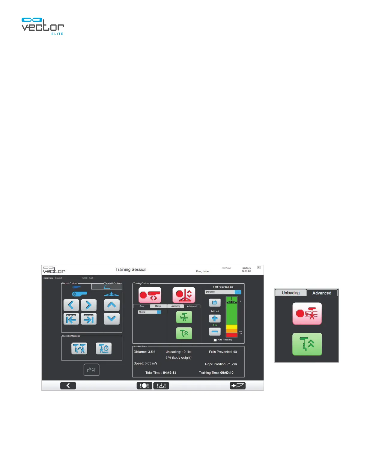 exercise. The system monitors the difference between the set unloading and the actual force applied