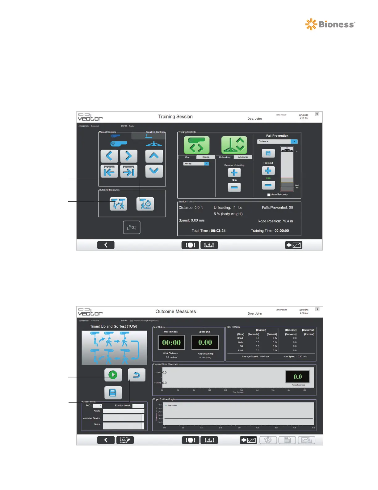Figure 7-2: Outcome Measures TUG Test Screen