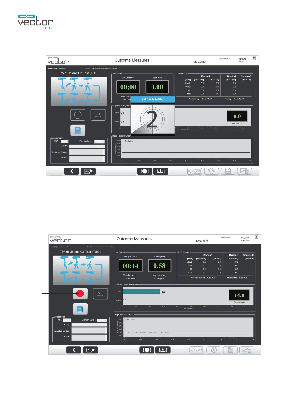 chair, press the Stop button to end the TUG test. See Figure 7-4.