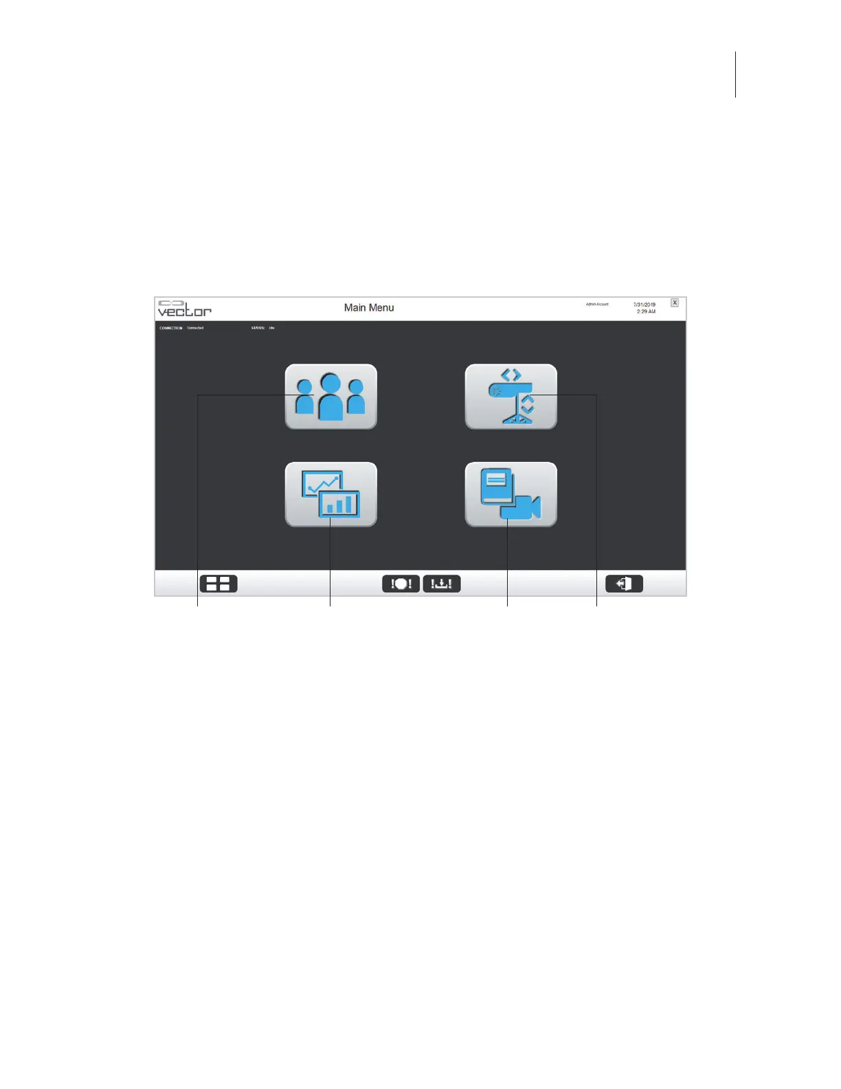 The Manual Control, Summaries, and Reference Material Library menus can be accessed from the Main