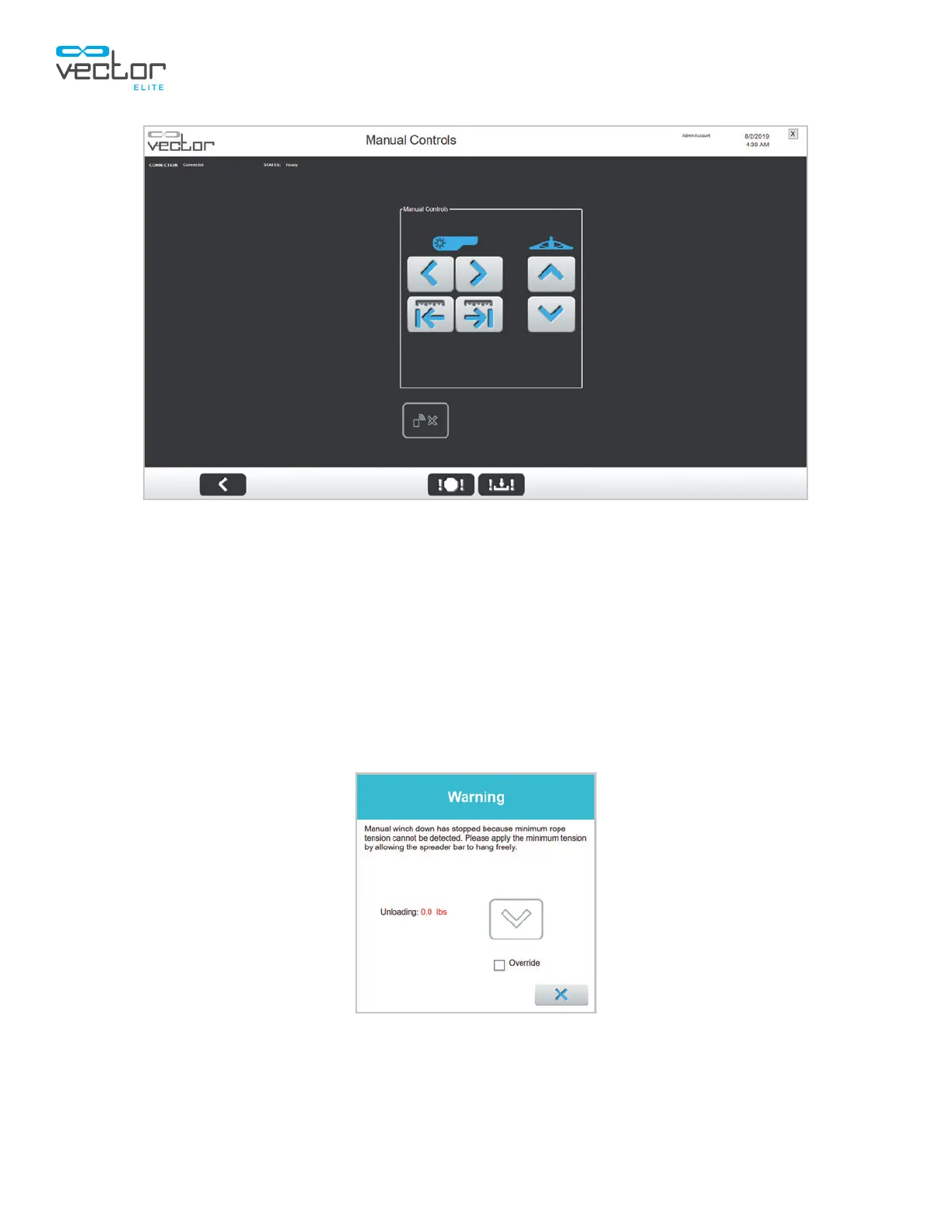 box. This enables the winch down button on the popup screen. Once complete, press the X button to