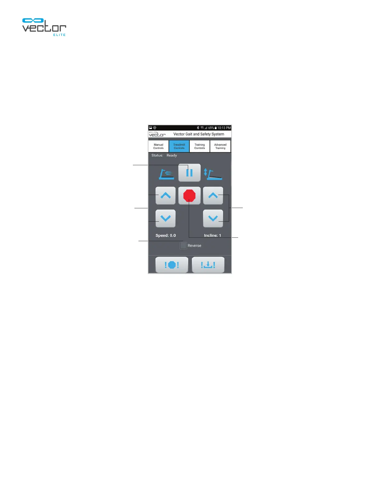 7. The belt direction can be reversed by pausing the treadmill session, then selecting the Reverse