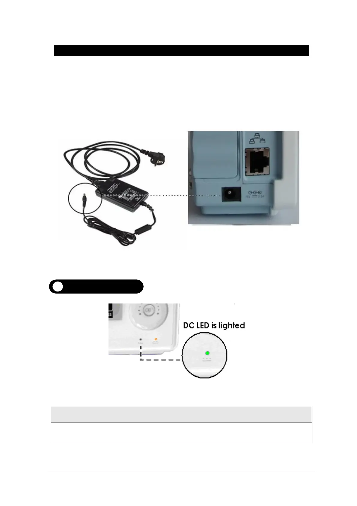 DC Power LED is lighted on when the DC Power is plugged into the inlet at the back of the product.