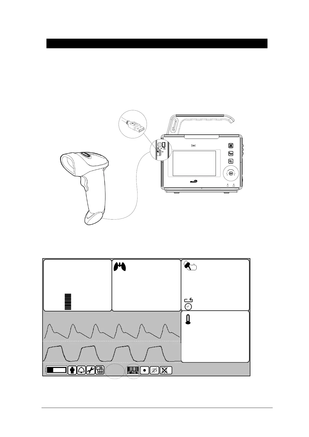 the device. First connect the barcode scanner to the USB HOST connecter on the left side