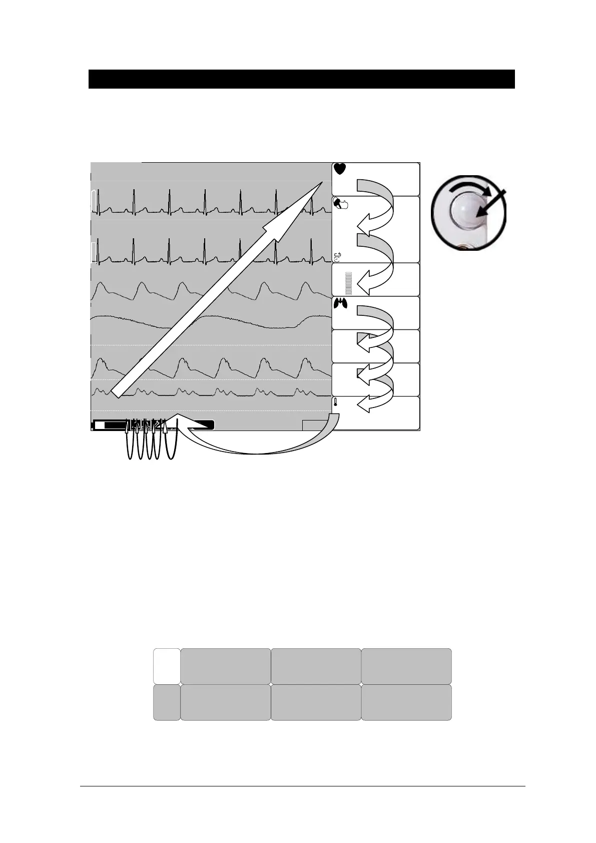 MENU → ECG → NIBP →SpO2 → RESP(EtCO2) → IBP1 → IBP2 → TEMP. An inactivated window