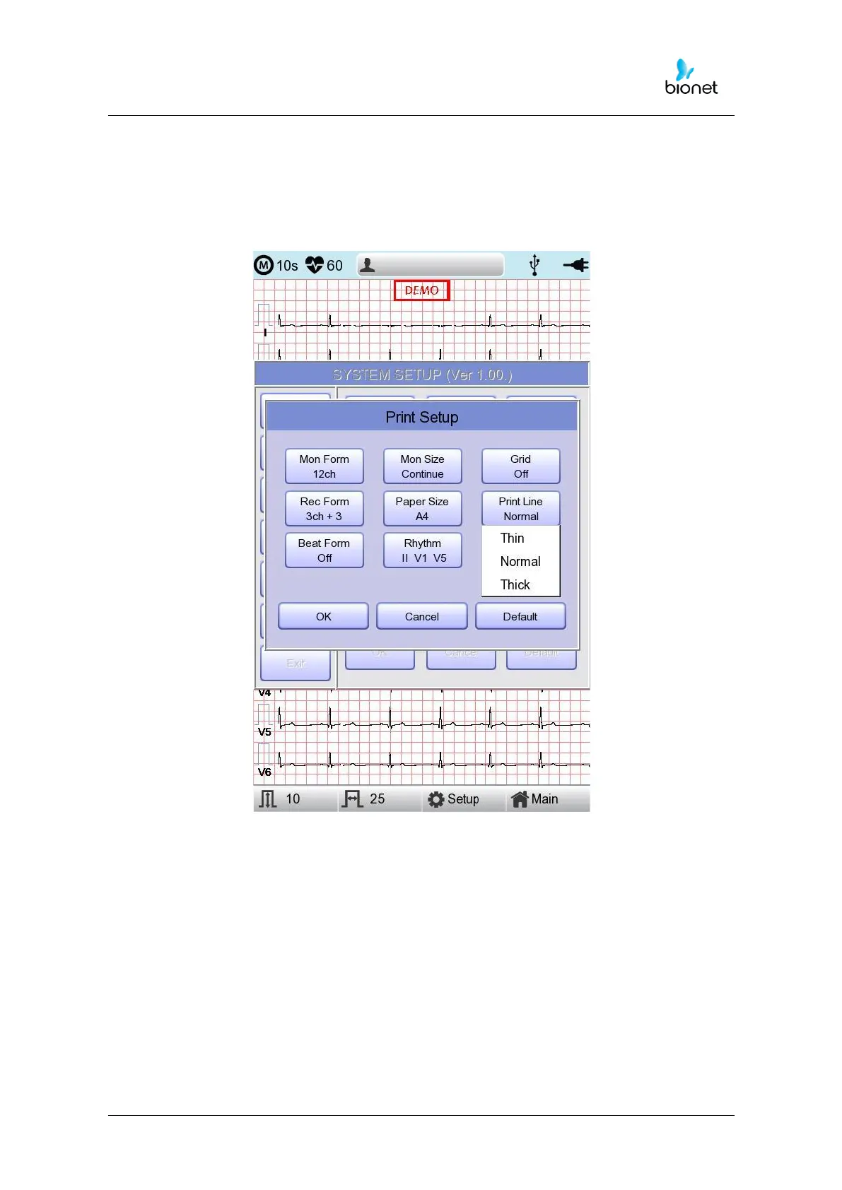 You can set the line thickness of the printouts. Three setting options are available: “Thin”,