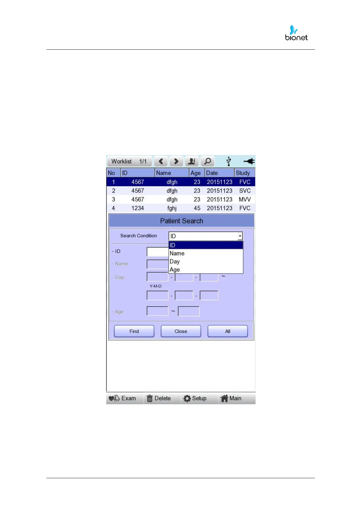 Press the ‘Find’ button after inputting the information about ID, Name, Date or Age.