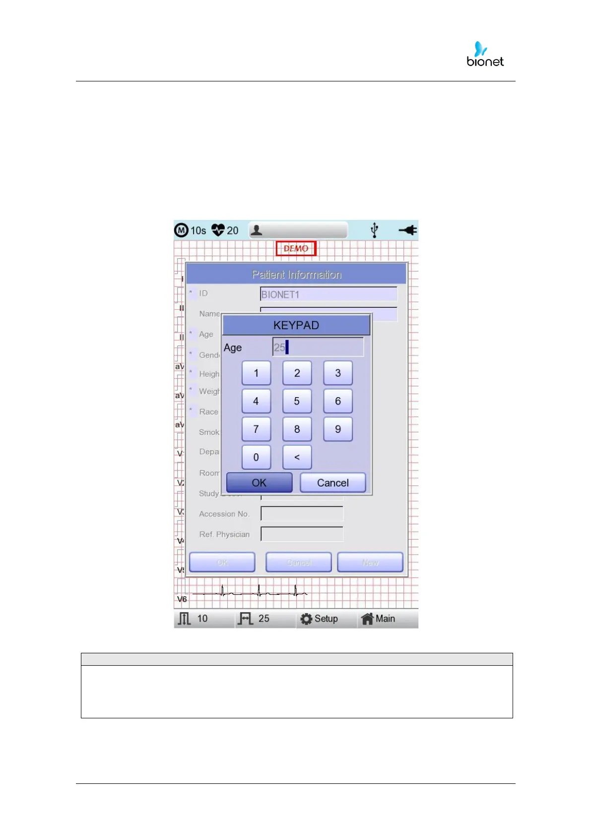 When the user selects the line of Age, Birth, Height or Weight, a keypad will show up on