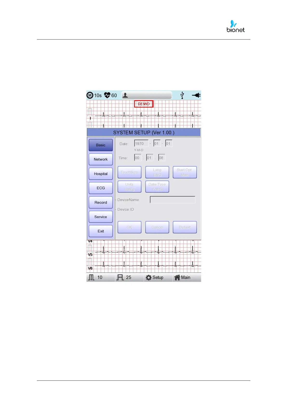Basic Setup consists of Date, Time, Touch screen, Start Option, Unit, Date Type and