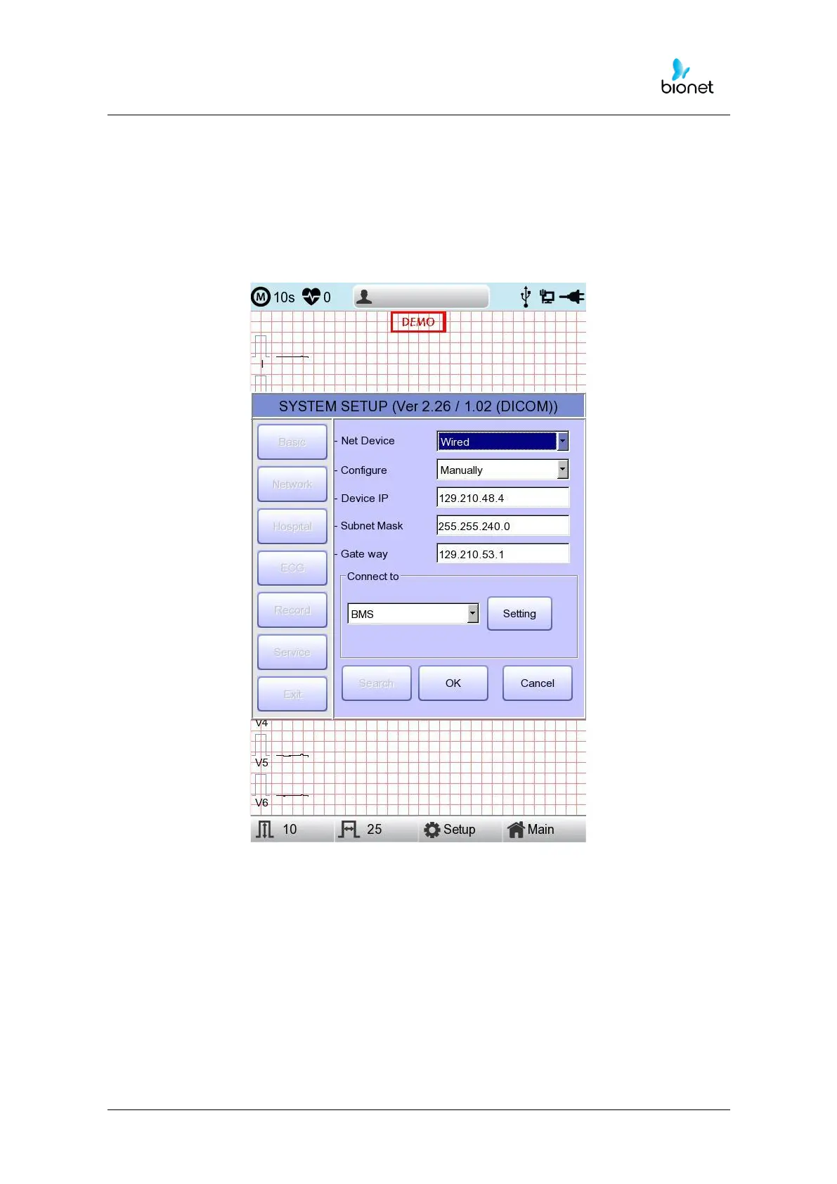 The mode of network connection can be selected as Wired or Wireless in ‘Net Device’