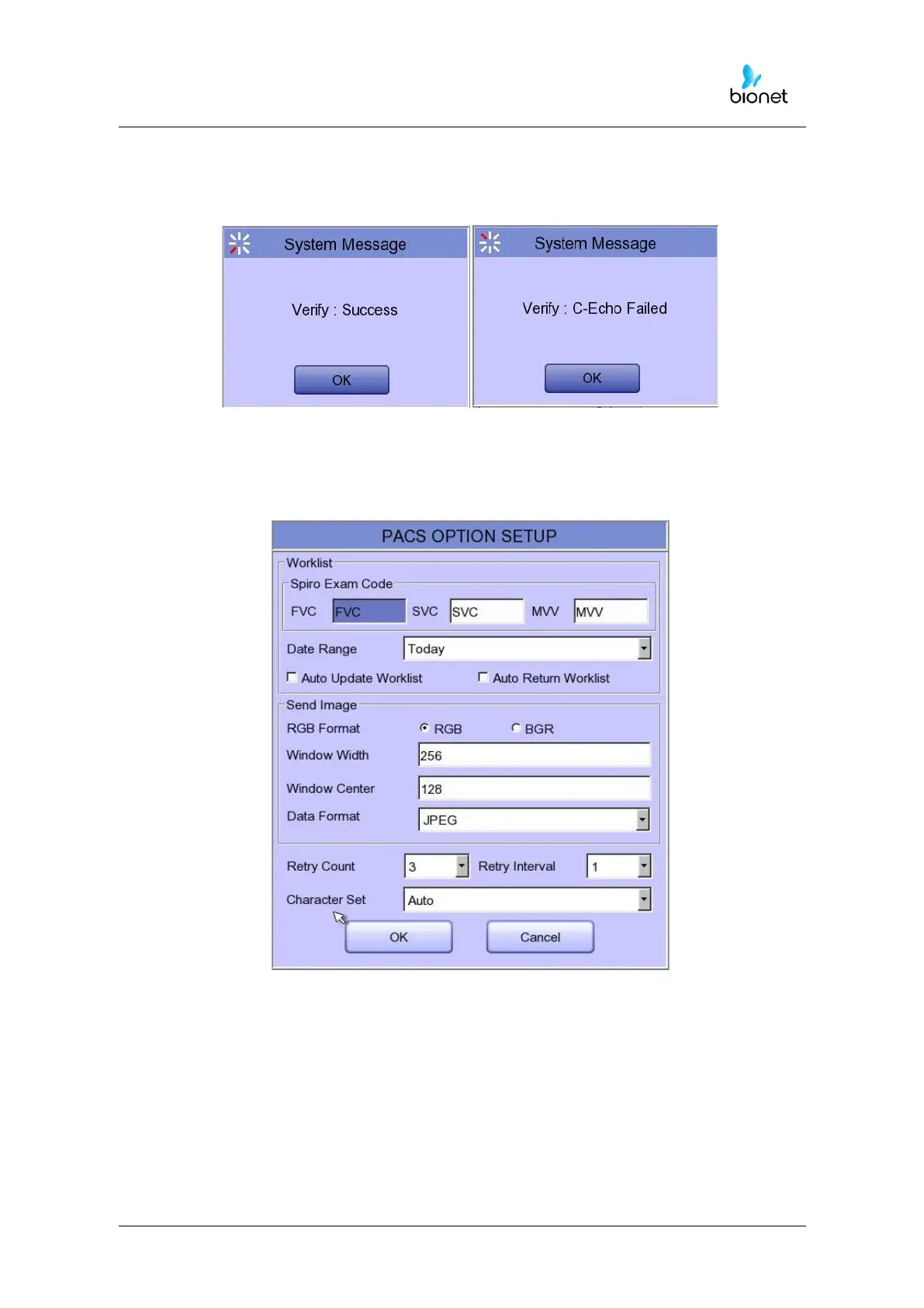 Set the PACS option by pressing the More button when connection to the server is