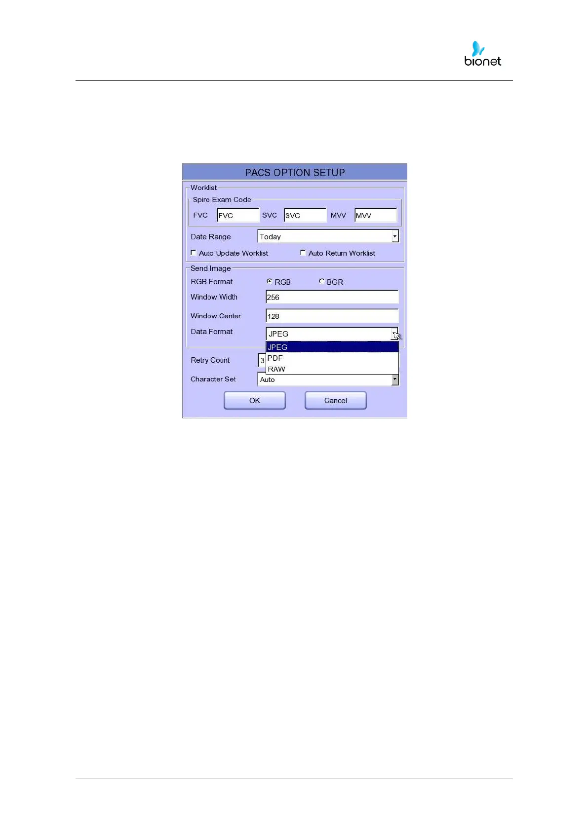 Set the data format for the file to be transferred to the PACS Server.