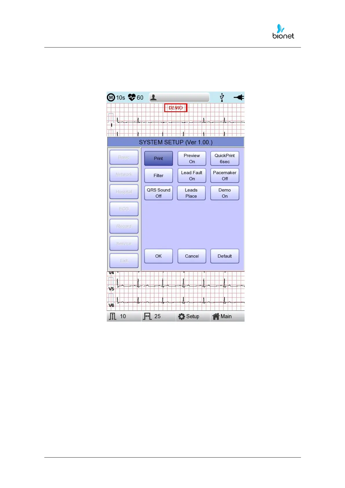 When selecting the ‘ECG’ menu at the left side of the Setup page, ECG Setup page will