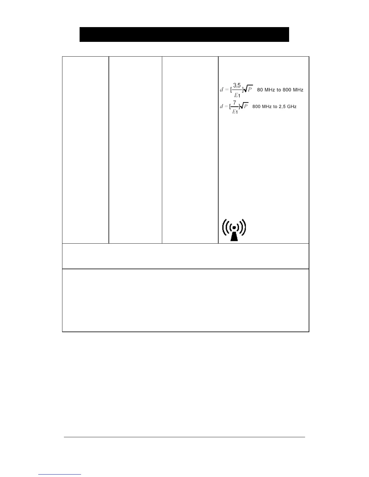 b Over the frequency range 150 kHz to 80 MHz, field strengths should be less than [V1] V / m.