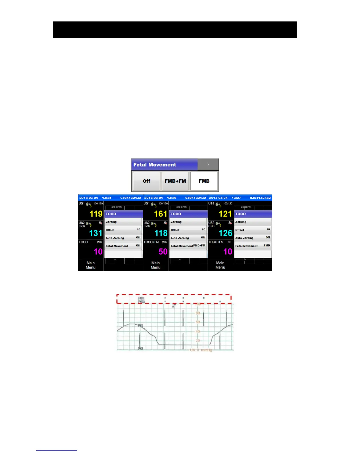 Fetal Movements are displayed as Fetal Movement graphs, and automatically detected Fetal