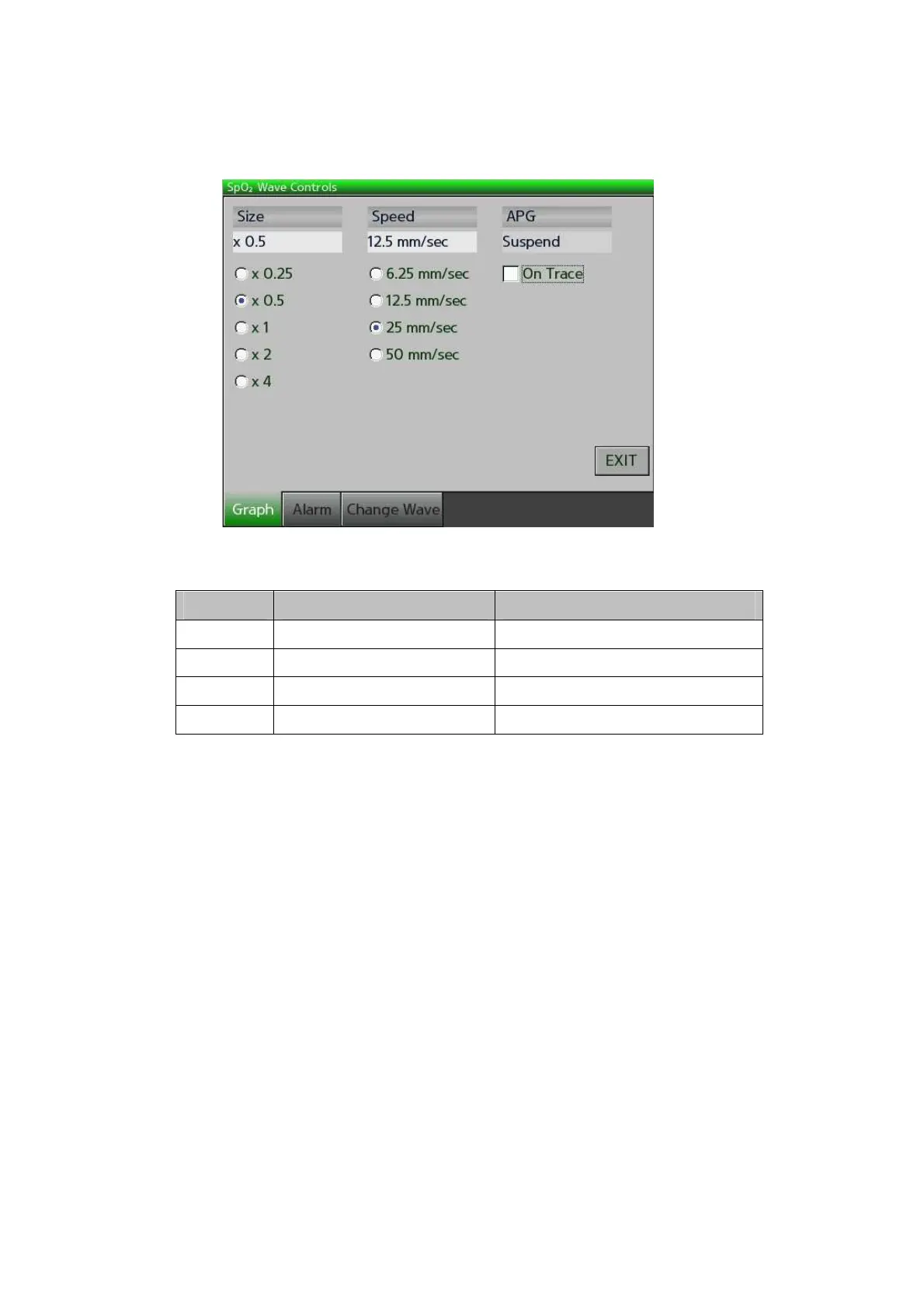 Set the speed of SpO2 wave