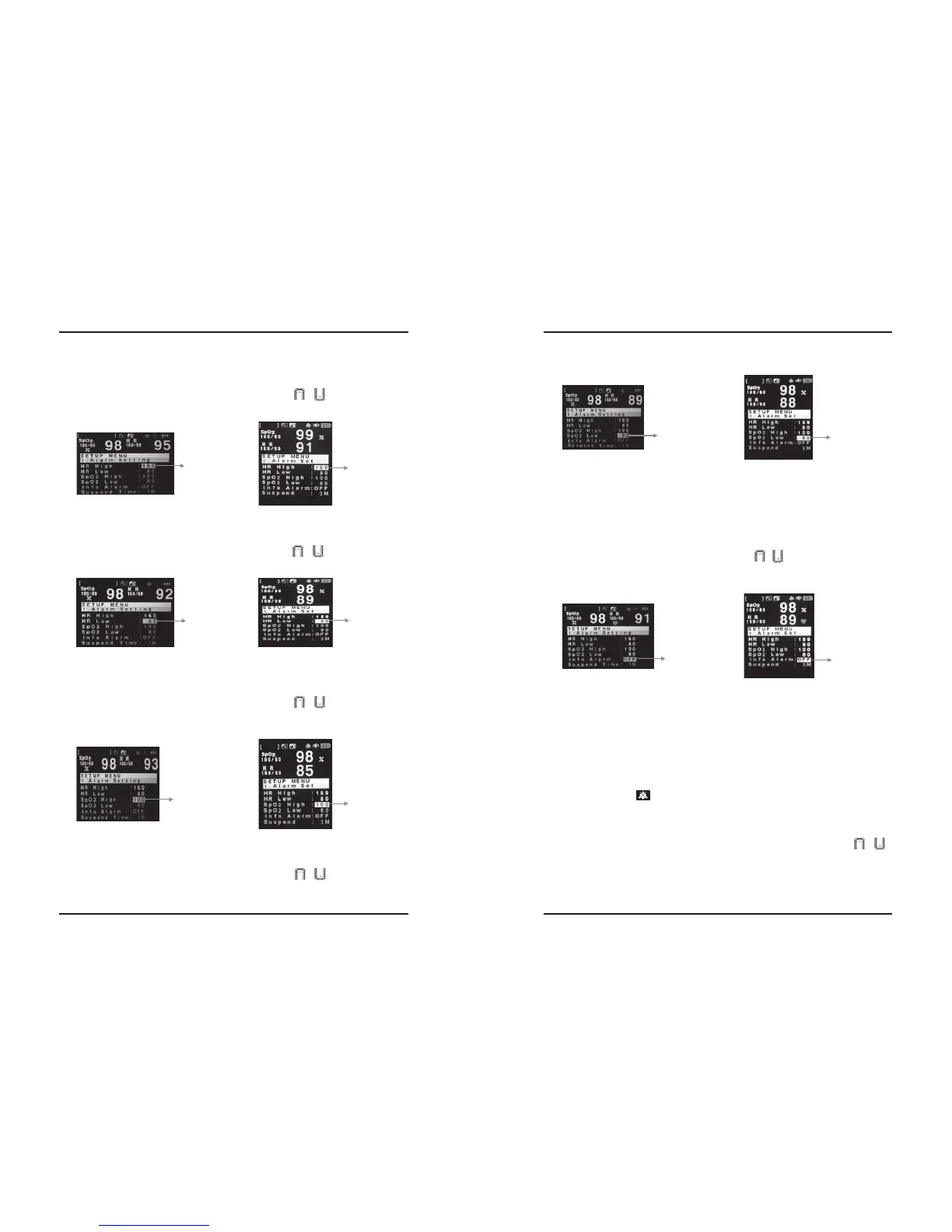 ※The alarm will not ring if you set the Suspend Time as OFF, even though the alarm occurs