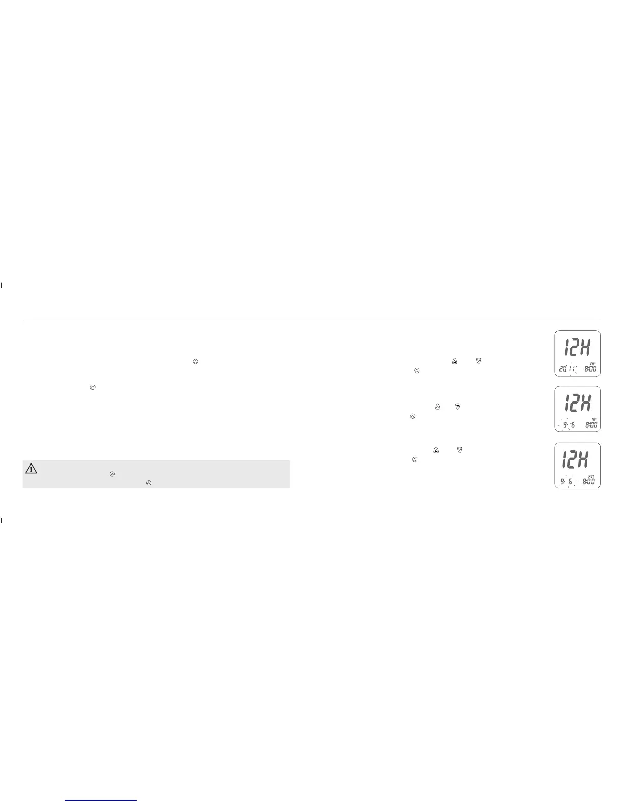 With the day blinking, press the " " or " " button until the current day
